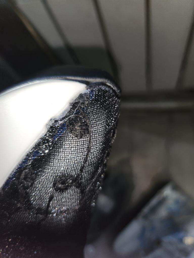 Am Spann etwas eng, am rechten Fuß liegt die Spitze auf dem Mesh auf, asymmetrisches Muster am rechten und linken Sneaker