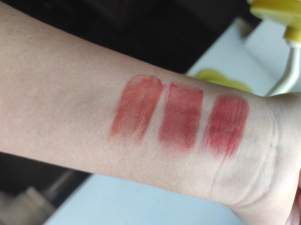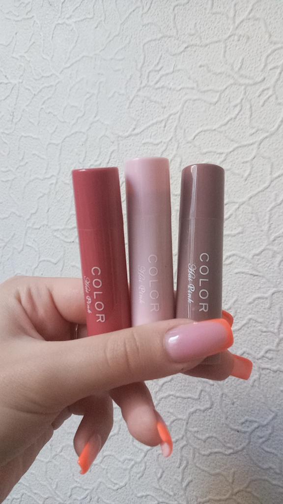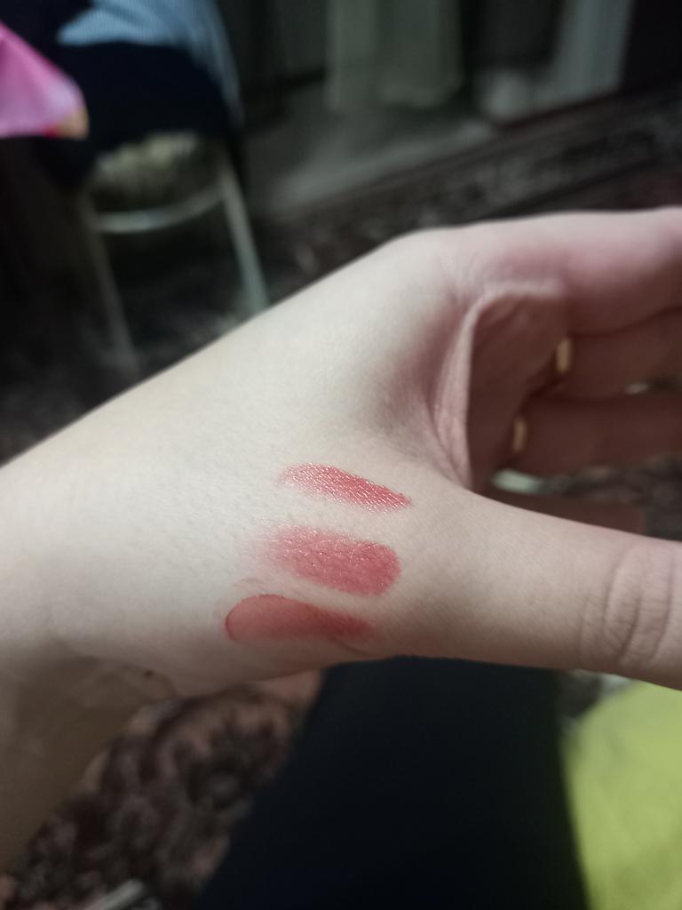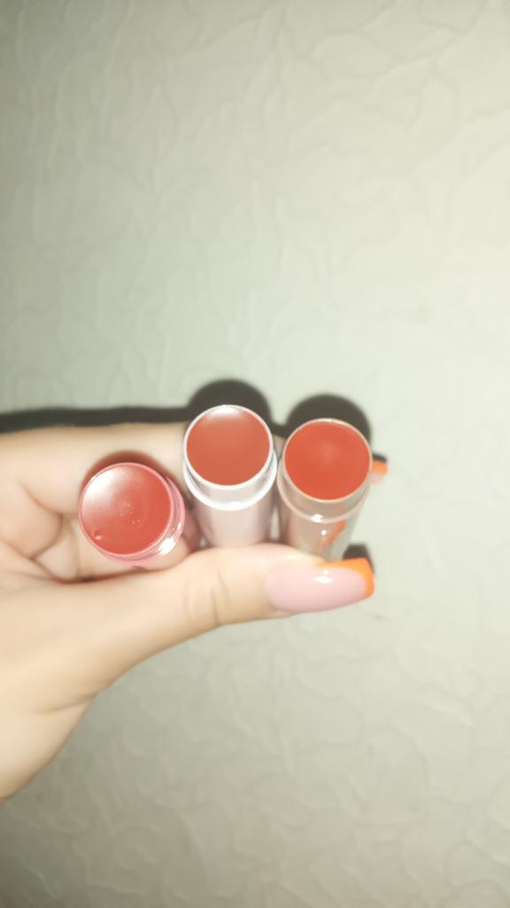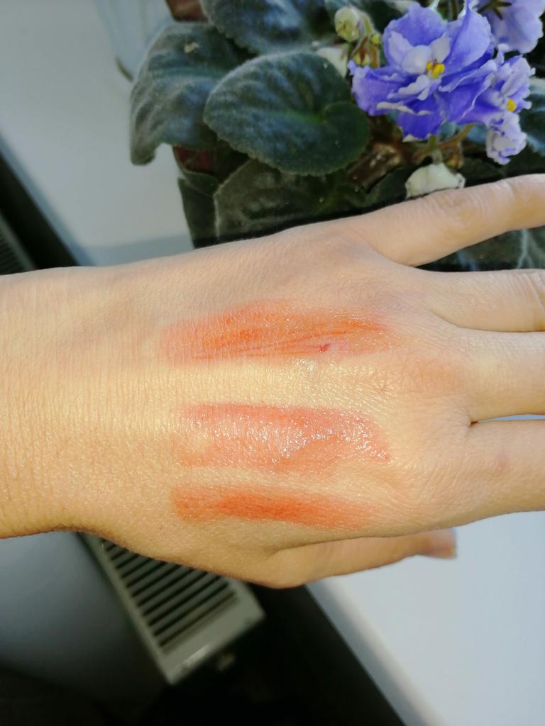 Coole Lippenstifte. Es fühlt sich an wie Lippenöl auf den Lippen, nachdem man die Lippen abgewischt hat, bleibt das Gefühl von Öl ein wenig bestehen und die Lippen scheinen weich und mit Feuchtigkeit versorgt zu sein (oder es kam mir einfach nur so vor 😄) Von den Minuspunkten: Es ist nicht bequem aufzutragen (da die Form nicht bequem ist, aber man kann sich daran gewöhnen) und etwas Aroma. Und mir hat alles gefallen ☺️
