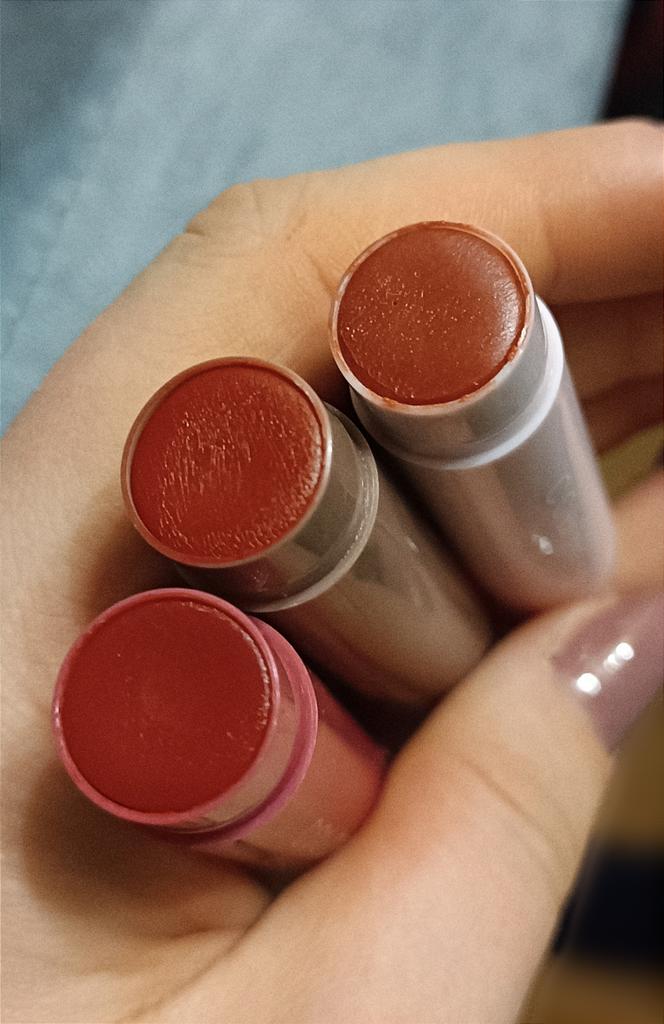 Die Farben sind einander ähnlich (ziemlich hell) und sehen auf den Lippen wunderschön aus. Meine Lippen sind immer trocken, deshalb brauche ich einen Balsam, der die Risse nicht betont, und diese hier sind genau richtig. Danach glänzen die Lippen und sehen mit Feuchtigkeit versorgt aus.