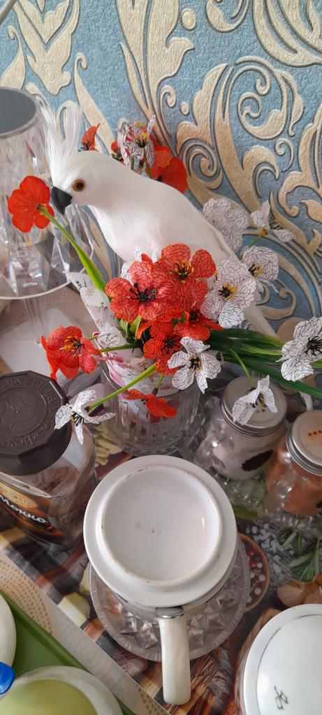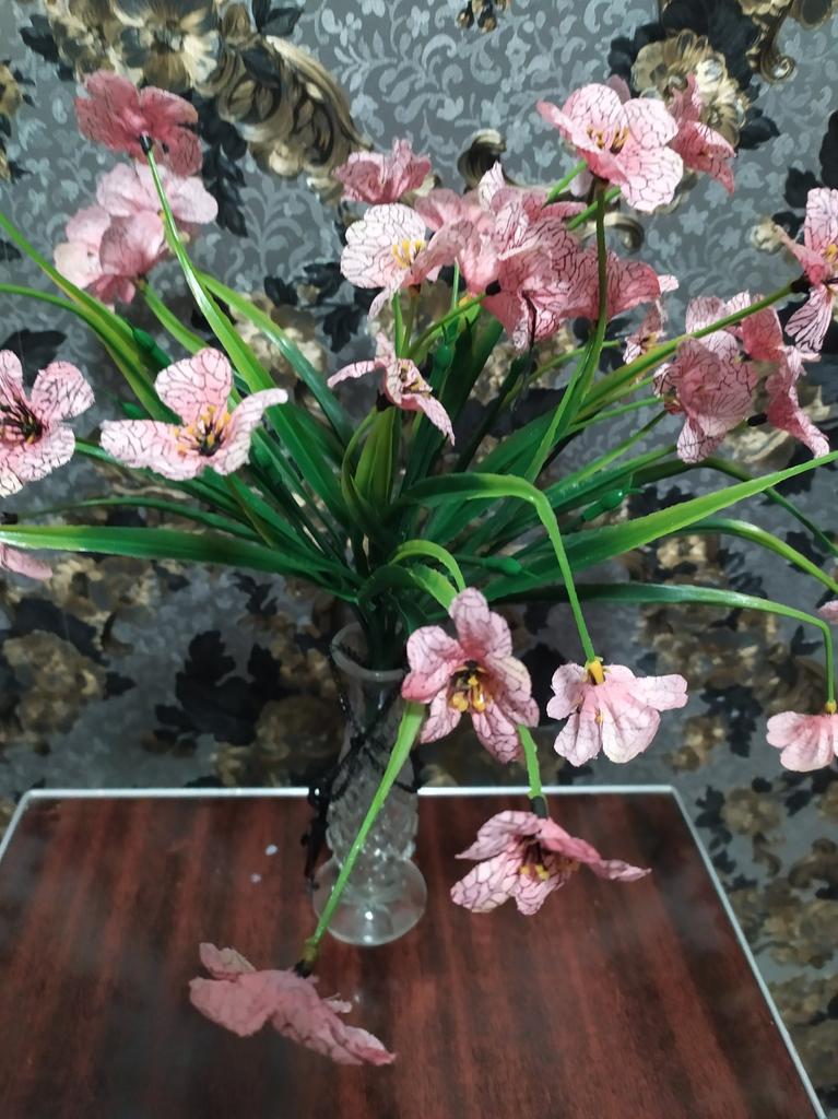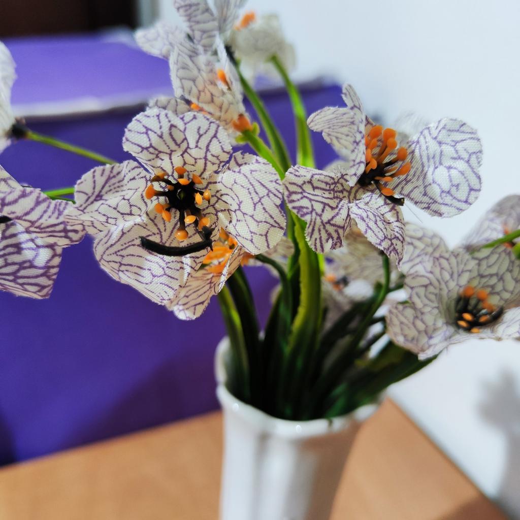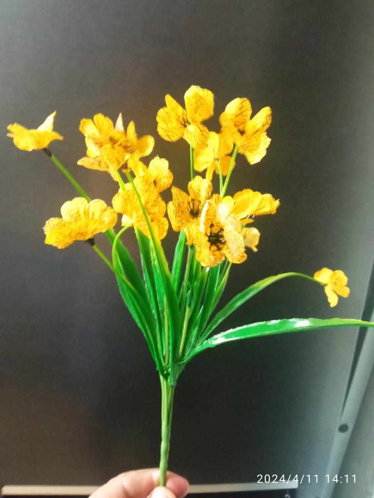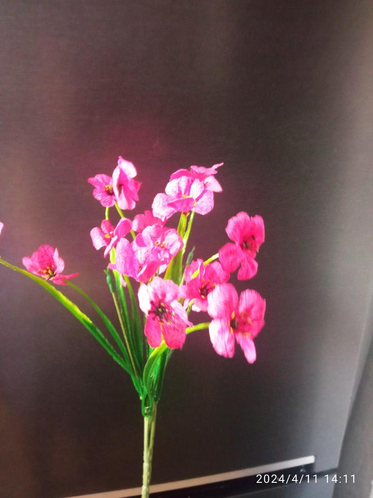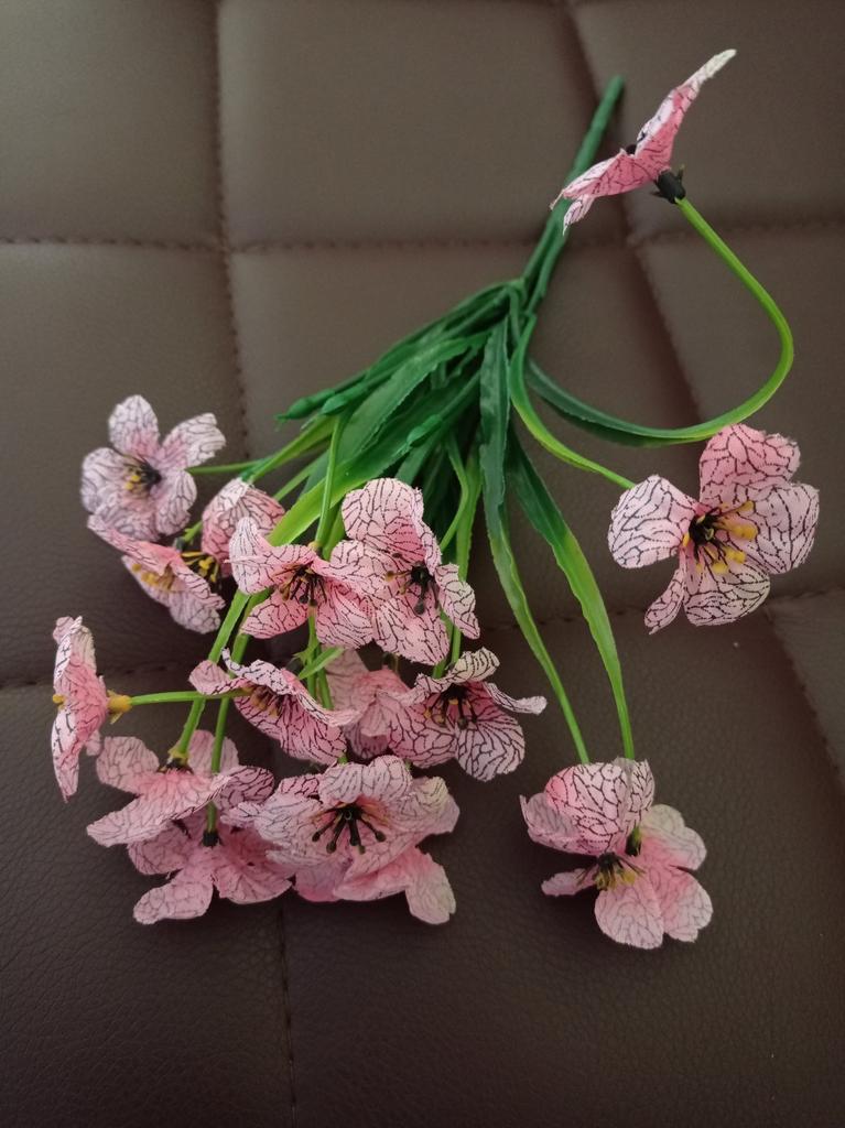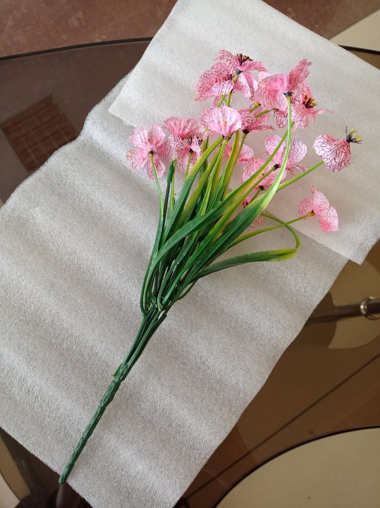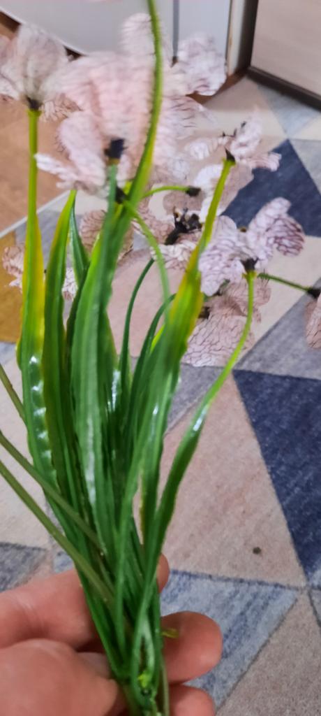 Ein Zweig künstlicher Blumen. 🤩 Der Zweig ist etwa 30 cm lang und hat 18 Köpfe. Wir befürchteten, dass der Ast oder die Köpfe beim Transport beschädigt werden könnten, aber sie haben es in einwandfreiem Zustand erhalten. Nach dem Auspacken richteten sich nach ein paar Minuten die Blütenblätter auf den Köpfen aus, und mit der Zeit richtete sich auch der Zweig selbst aus. Der Zweig besteht aus Kunststoff. Um Ihr Zuhause oder Büro zu dekorieren, ist es besser, drei oder mehr Zweige zu kaufen, es sieht natürlicher aus, da die Blumen sehr cool gemacht sind und wie echte aussehen. Viel Spaß beim Einkaufen! 👍😊