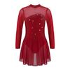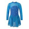 Pailletten Figur Eislaufen Roller Skating Tanz Kostüm Frauen Tüll Gymnastic Trikot Lange Ärmel Mesh Splice Ballett Dancewear