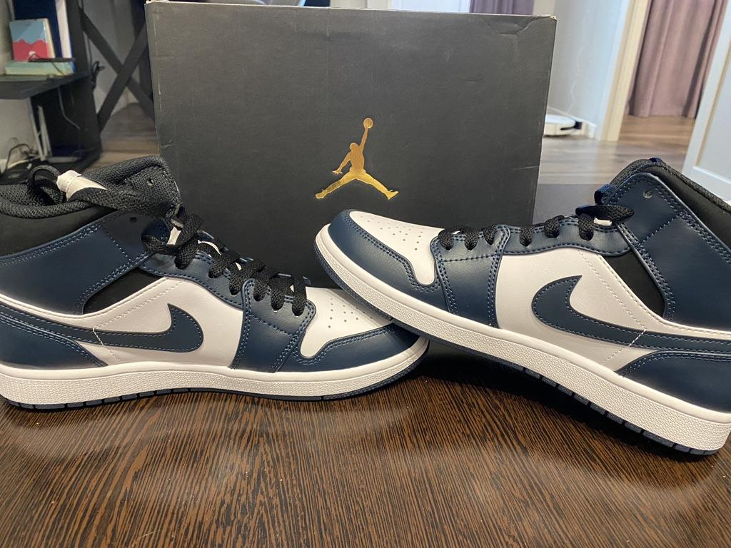 Air Jordan 1 Mid Armory Navy Herren Sneaker Blau Schwarz Weiß 554724-411