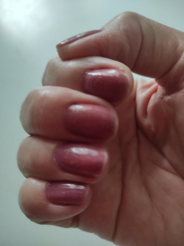 Der Lack ist ausgezeichnet. Die Nägel sind frisch und glänzend. Die Farbe ist leicht rosa, gesund. Danke schön.