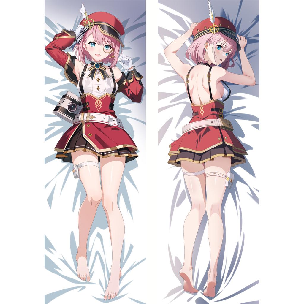 Genshin Impact Charlotte Cosplay Dakimakura Otaku Überwurf, 2-seitiger Kissenbezug, langer Kissenbezug, umarmender Körper-Kissenbezug, Pfirsichhaut