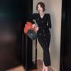 Kleid Strickjacke Weibliche Herbst Göttin Temperament Französisch Solide Langarm Fleece Kleid Mid länge Gewickelt Hüfte Stricken Kleid