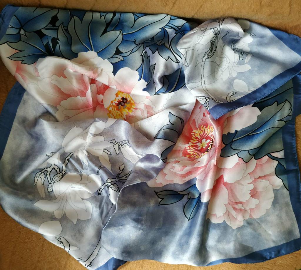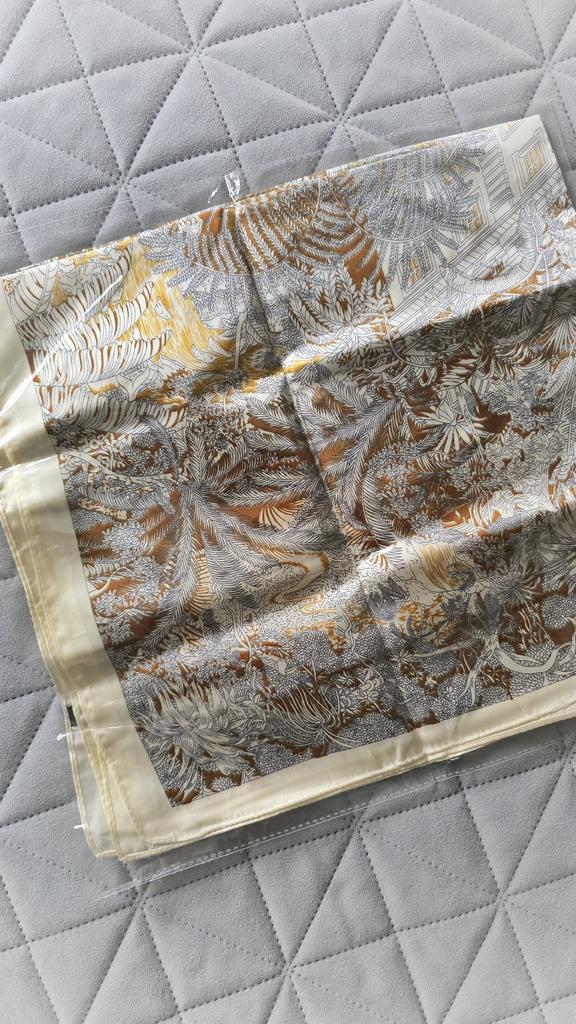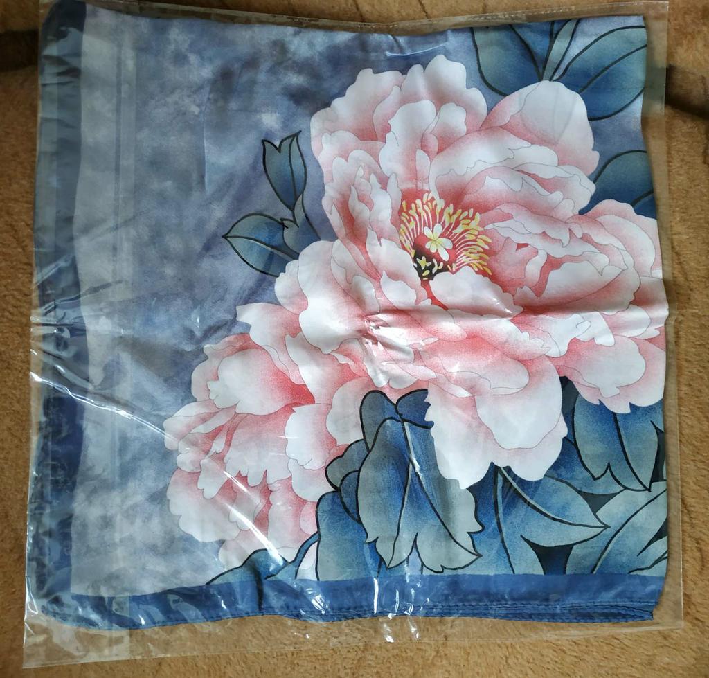 Ein wunderschönes Taschentuch. Dichter Stoff. Gut gemaltes Bild. Es wurde sorgfältig in einem transparenten, dichten Beutel verpackt. Nicht zerknittert. Das Bild ist einseitig bedruckt. Schöner Kauf zum kleinen Preis.