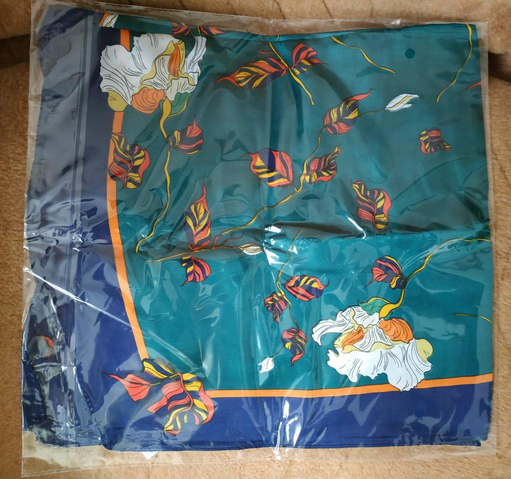 Der Schal fühlt sich sehr angenehm an, der Druck ist klar und schön. Foto 2 - Verpackung.