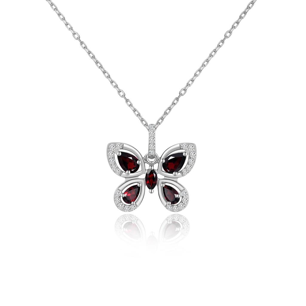 Halskette mit Schmetterlings-Anhänger aus Silber mit natürlichen roten Granat-Edelsteinen, feiner Schmuck aus 925er Sterlingsilber für Frauen und Mädchen, schönes Geburtstagsgeschenk