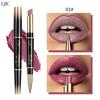 QIC Doppelend-Lippenstiftstift, wasserfester, langlebiger, farbproduzierender Zwei-in-Eins-Lippenstift-Lippenkonturenstift mit schmaler Tube