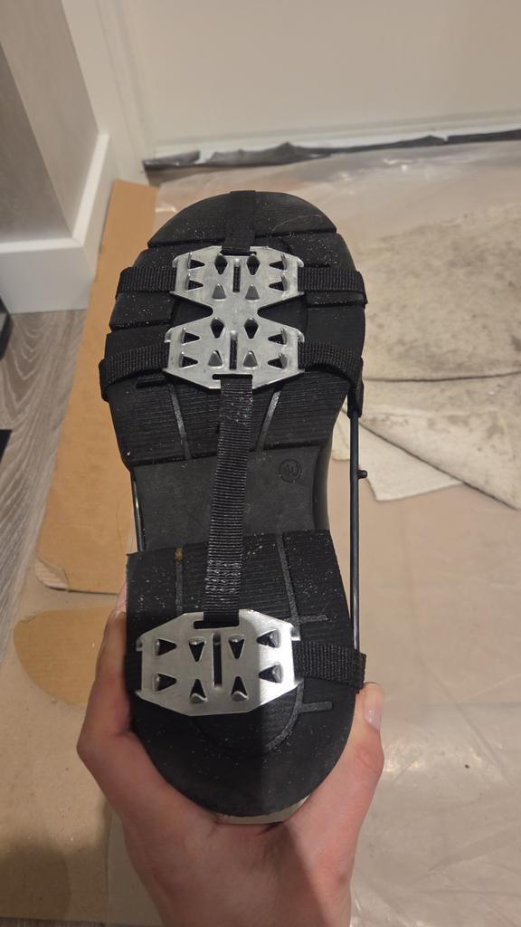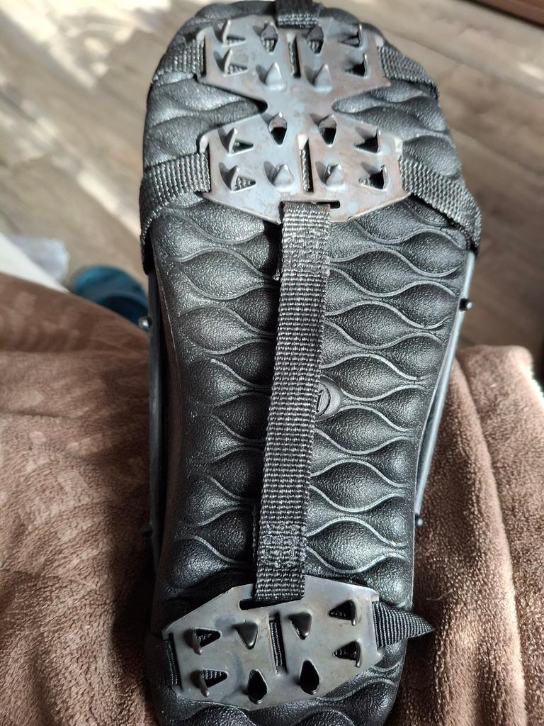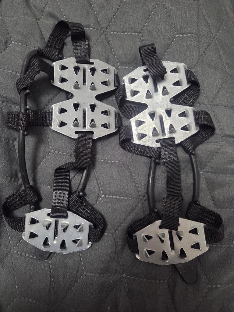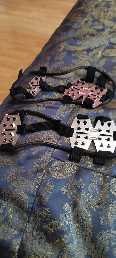 Gute Eisspikes. Sitzen gut am Fuß. Nur die hintere Platte ist zu nah an der Fußmitte, die Ferse bleibt offen und kann rutschen. Habe sie noch nicht in der Praxis ausprobiert, vielleicht irre ich mich auch.