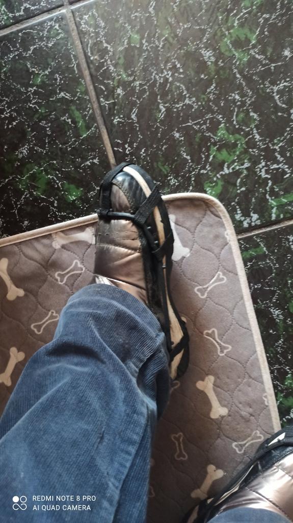 Wirklich, kompakte und robuste Protektoren. Wahrscheinlich schlecht zu sehen. Schwarz auf Schwarz, aber sehr bequem. Die Füße rutschen nicht, obwohl man aus Gewohnheit vorsichtig auf Schnee tritt.