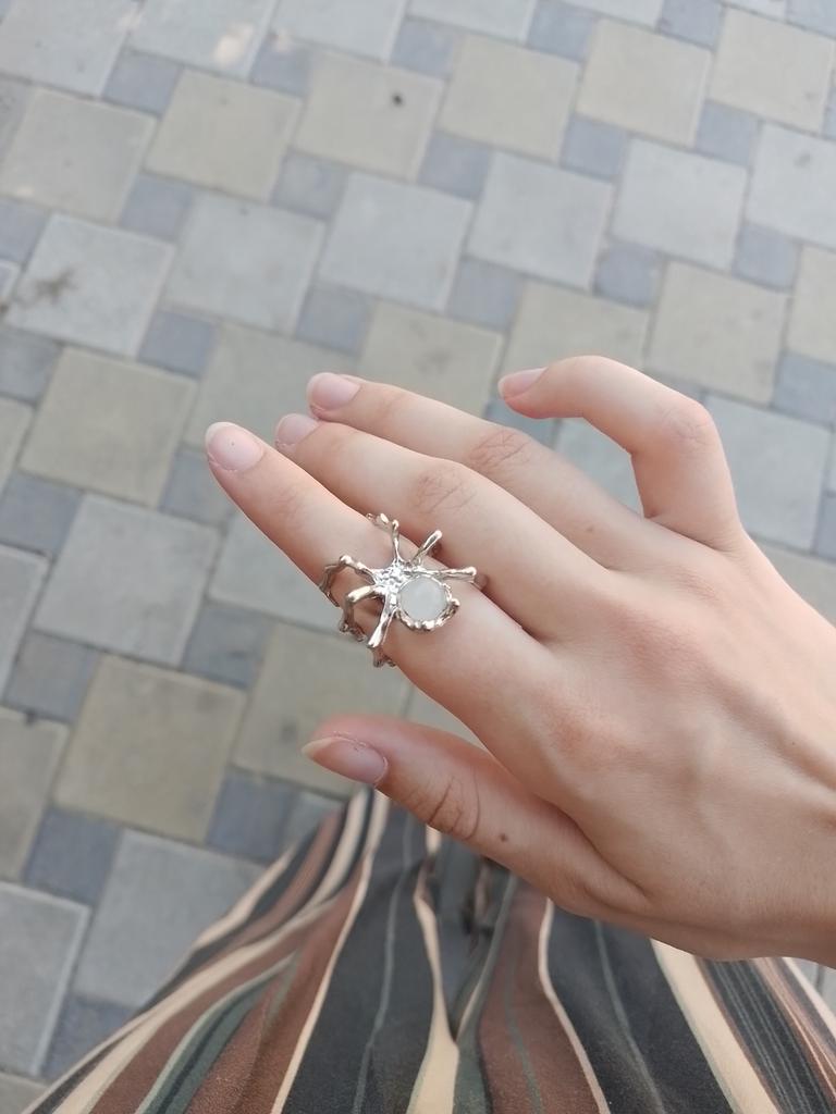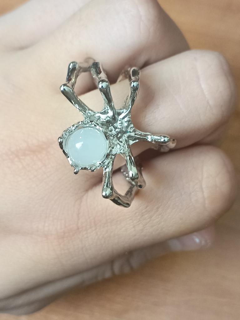 Schöner Ring, er kam etwas zerknittert an, aber ich habe ihn schnell repariert, die Zinken biegen sich, sodass Sie ihn an die Größe Ihres Fingers anpassen können. Der Stein ist an Ort und Stelle, er sieht toll aus.
