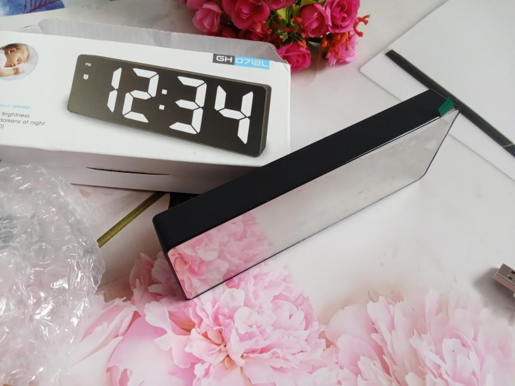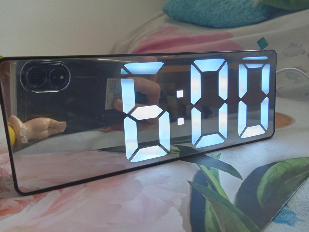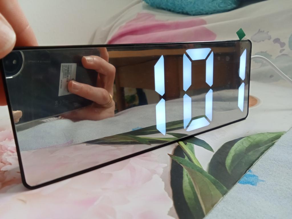 Spiegelwecker, LED-Digitaluhr, Nachtlicht, Tischuhr, USB-Aufladung