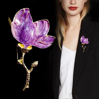 Exquisite glänzende Strasssteine eingelegte Rose Blumenform Brosche Galvanik Emaille Pin Anzug Revers Schal Frauen Abzeichen Brautschmuck Geschenk