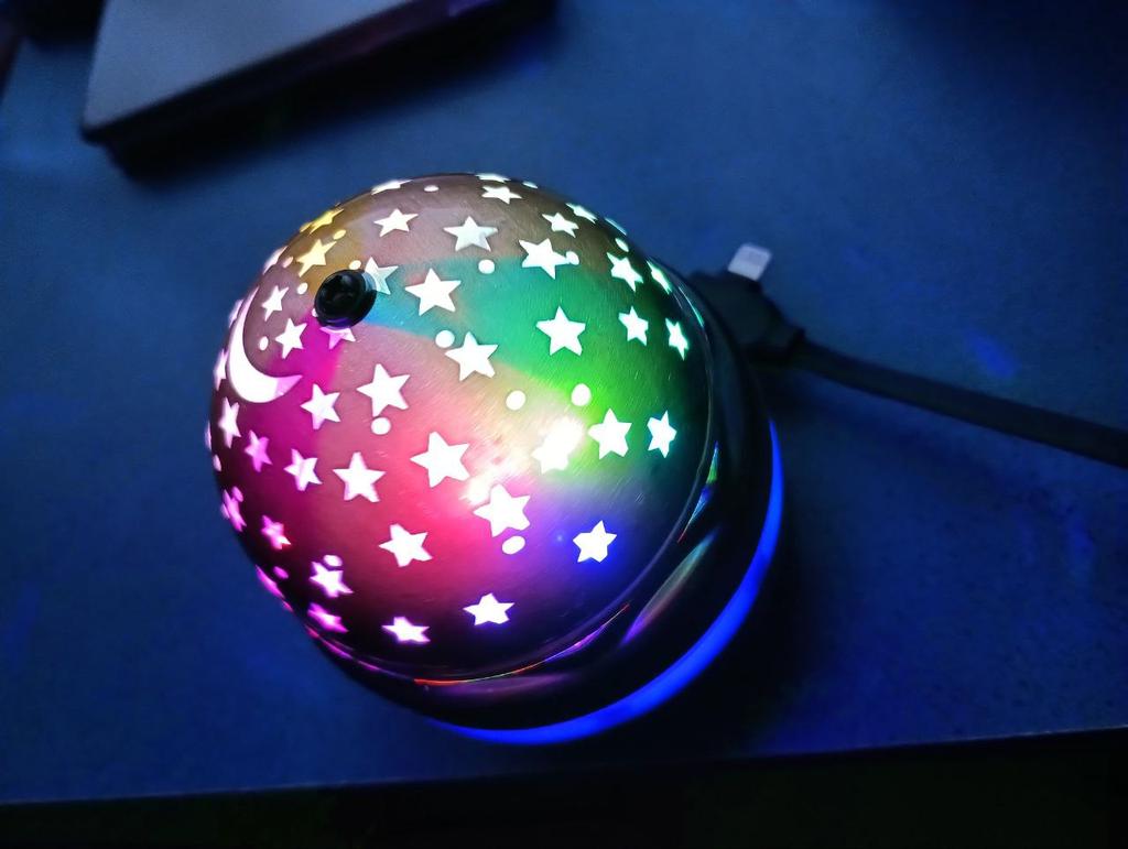 Ein lustiges Nachtlicht, das leuchtet und sich dreht.