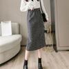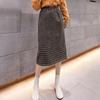 Hahnentritt-Karorock für Damen, Herbst und Winter, mit über dem Knie verdicktem Fleece, mittellanger, gerader, röhrenförmiger, geteilter Hüftwickelrock