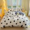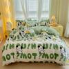 Vierteiliges Set aus frischem Wintermilchsamt, antistatisch bedruckter doppelseitiger Samtflanell-Bettbezug und dreiteiliges Set aus Samt