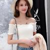 Solides, kurzärmliges, gestricktes Rüschen-T-Shirt für Damen mit Slash-Ausschnitt