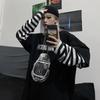 Harajuku Spaceman Brief Drucken Oansatz Streifen Tees Lose Gefälschte Zwei Stück T-Shirts Frauen Langarm Oversize Hip Hop Tops
