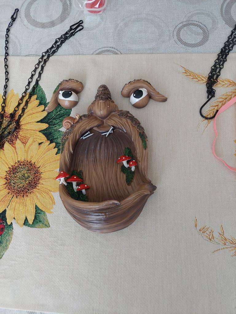 Harz-Baumgesicht-Ornament, einzigartige Yard-Art-Vogelfutterstation für den Garten im Freien
