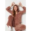 Rosafarbenes Wellsoft-Sweatshirt-Hose-Strickpyjama-Set mit Kapuze und Ohren, Thmaw24pt00030