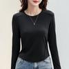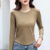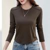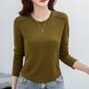 Damenbluse für Frühling und Herbst, Rundhalsausschnitt, einfarbig, kurzes Langarm-Top