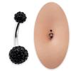 Nabel-/Ohrpiercing-Juwel mit 2 schwarzen Kristallkugeln – Chirurgenstahl – Länge 10 mm