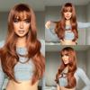 LOUIS FERRE Schwarze gewellte synthetische Perücken für Frauen, natürliches langes Haar mit Pony, hitzebeständige Faserperücke für den täglichen Gebrauch