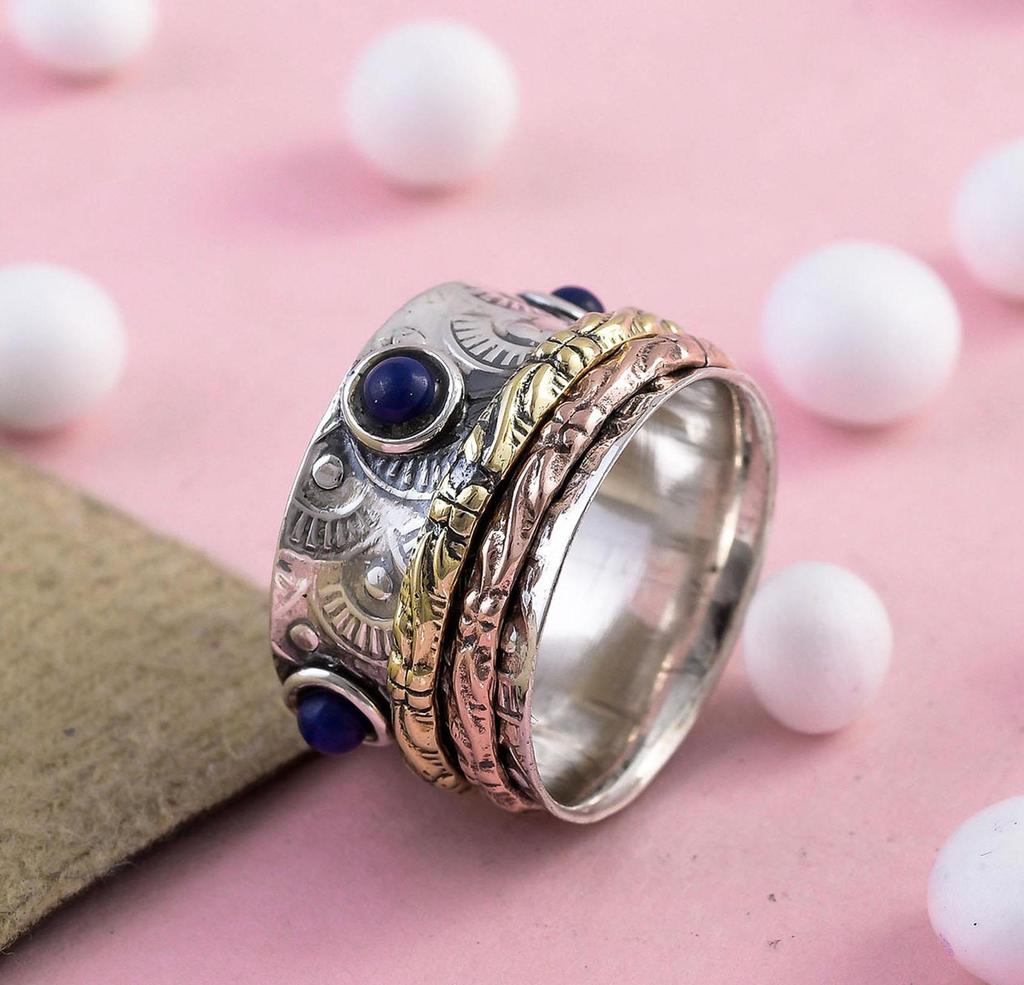 Lapislazuli-Edelstein-Spinnerring, Meditationsring, Angstring, 925er Sterlingsilberring, klobiger Ring, Vintage-Ring, Geschenk für Sie