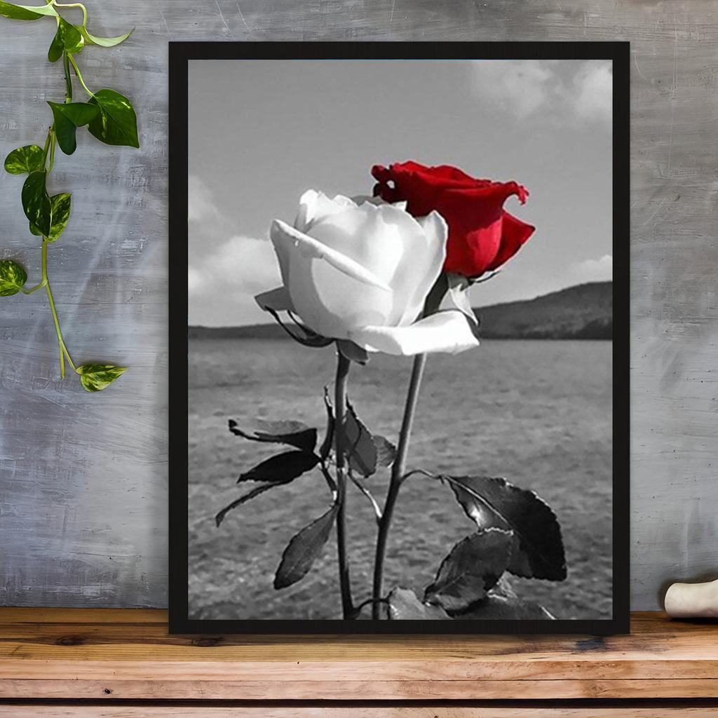 DIY-Diamantgemälde, rote und weiße Rosen, Kreuzstich-Set, Mosaik-Kunst, Diamantgemälde, voller Kreis/quadratischer Diamant, Heimdekoration