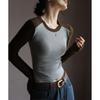 Herbst-Damen-Bottom-Shirt aus Baumwolle mit Rundhalsausschnitt, Farbkollision, Schulter-Ärmel-Bottom-Shirt, innen dünn, Netz, rot, langärmeliges Oberteil