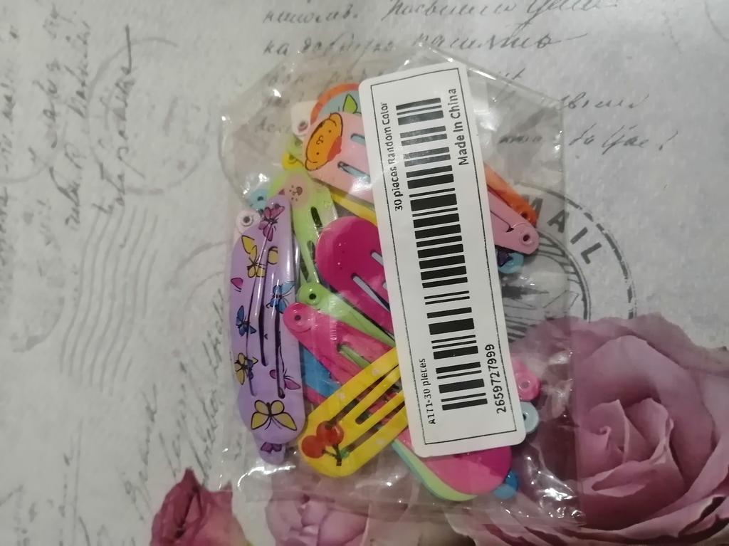 20 von 30 Haarnadeln gesendet. Schön, bunt, alles ohne Paar. Bequem, ideal für Kinderhaare (Bilder sind hell und hochwertig). Vielen Dank, Joom. Ich empfehle den Verkäufer und das Produkt aufgrund der Qualität der Haarnadeln selbst.