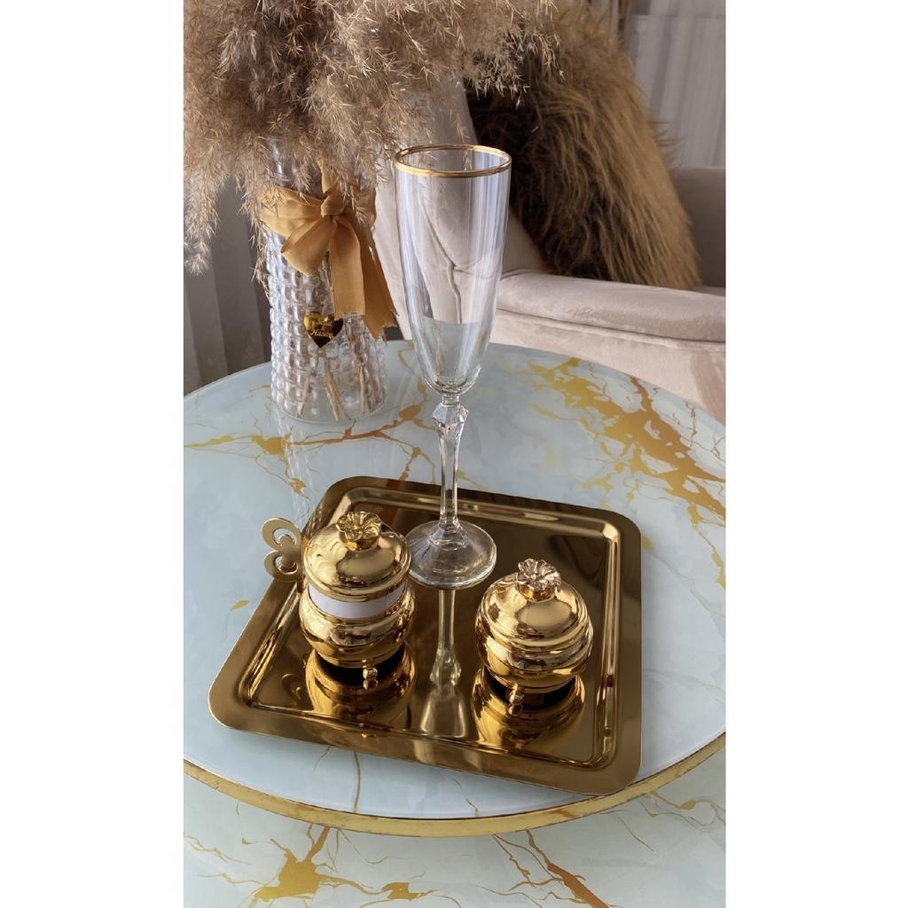 Quadratisches Einzel-Servier- und Präsentationstablett aus Edelstahl in Goldfarbe Lux