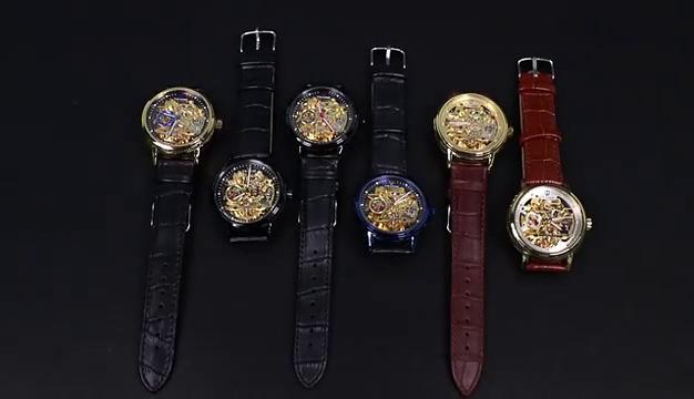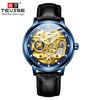 TEVISE Uhr Herren Hollow Fashion Leder Herrenuhr Im Dunkeln leuchtende automatische mechanische Uhr