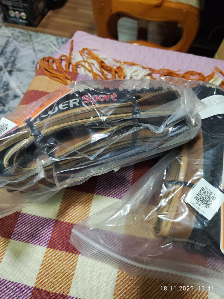 Reifen vorgesehen, um einen als Ersatz zu haben, ich habe den gleichen auf dem Fahrrad, sehr angenehm und dämpft die Straßenunebenheiten gut