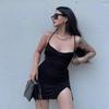 Frauen Mode Sexy Mini Kleider Solide Spaghetti Strap Backless Lace Up Slim Fit Schlitz Kleid Rot Schwarz