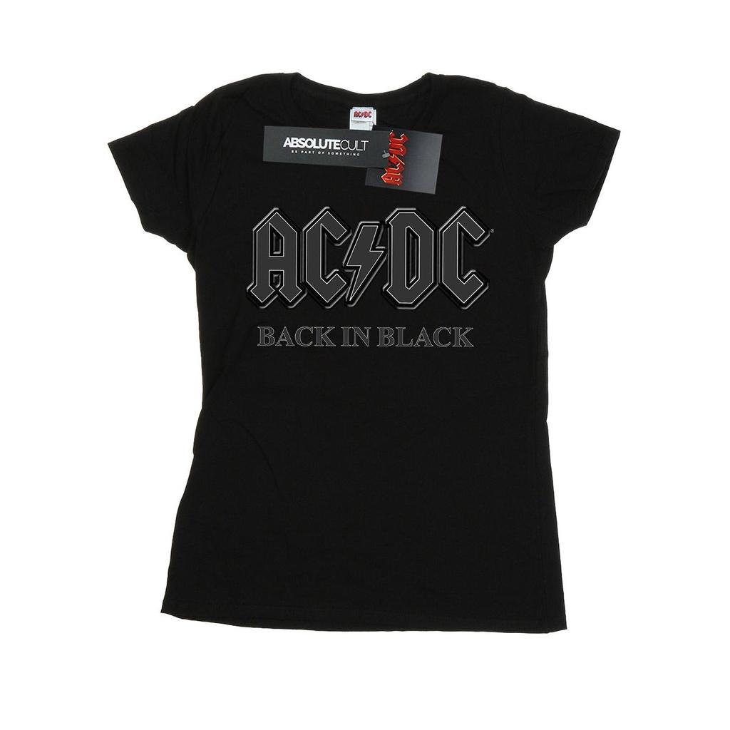 AC/DC Damen-/Damen-T-Shirt „Back In Black“ aus Baumwolle im Boyfriend-Schnitt