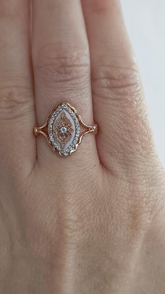 Ein sorgfältig gefertigter und hochwertiger Ring. Der Unterschied zwischen Roségold und reinem Gold ist kaum wahrnehmbar (nur bei hellem Licht). Größe