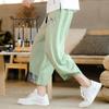 Japanische Baumwoll-Leinen-Haremshose für Herren, Sommer, atmungsaktive Leinen-Hose für Herren, lässige elastische Taille, Fitnesshose