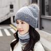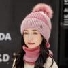 Damen-Wintermütze, warm halten, Mütze und Pelzgefüttert hinzufügen, Mütze und Schal-Set, warme Mützen für Damen, lässig, Kaninchenfell, Winter-Strickmütze