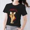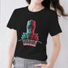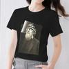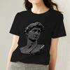 Retro Frauen Kleidung T-shirt Casual Slim Top Einfache Schwarz Pendler Kurzarm Lustige Skulptur Print Damen Mode O-ansatz Top