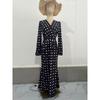 Frühling und Herbst frauen Kleid Chic Französisch Polka Dot Kleid Temperament V-ausschnitt Hüfte Kleid Krawatte Taille Dünne Bodenbildung rock