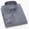 Langarm-Hemd aus reiner Baumwolle mit Karomuster, gestreift, für Geschäftsleute, Herbst, Frühling, normale Passform, Knopfkragen, pflegeleicht, bügelfrei