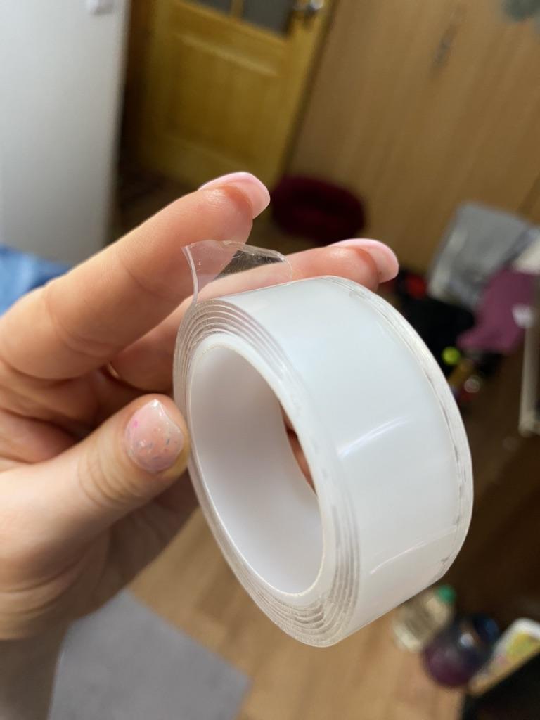 Doppelseitiges Haushaltsklebeband in Form eines Wickelbandes. Super stark, hat einen unangenehmen Geruch (sollte aber sein). Es kam gut verpackt, das Paket wurde zusammengebaut. Ich habe viel Erfahrung im Umgang mit chinesischem doppelseitigem Klebeband, sodass ich nichts bestellen muss (Haken, Aufsätze für eine Zahnbürste, für Adapter), alles hält ewig 😅 Daher habe ich mir zwei verschiedene Tapes für den Heimgebrauch gekauft, was ich euch auch wünsche ❤️