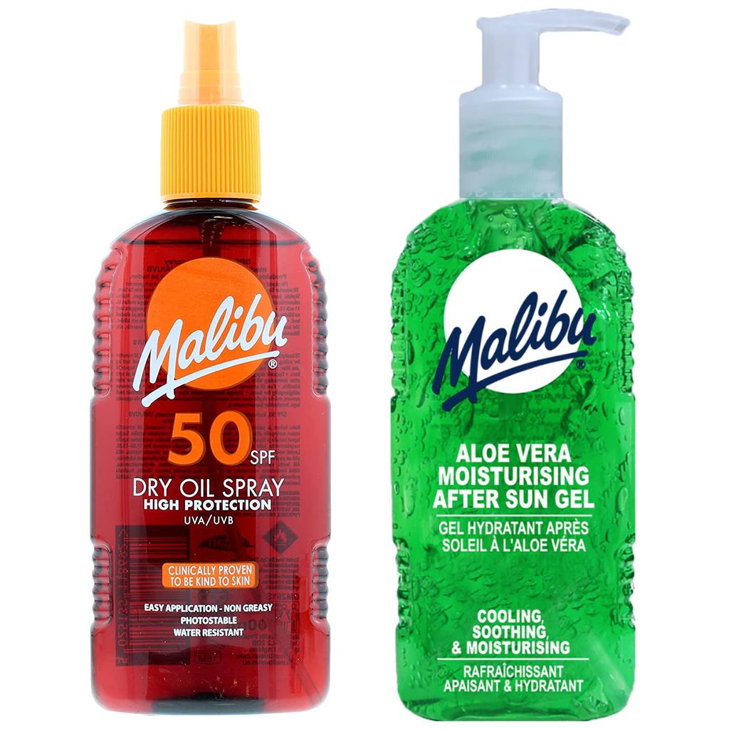 Malibu SPF50 Bräunungsöl 200 ml + Aloe-Gel nach dem Bräunen 200 ml