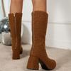 Herbst- und Winterschuhe, hohe Stiefel in Übergröße mit rundem Kopf und dickem Absatz, elastische Stiefel unterhalb des Knies, Damenstiefel.