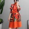Frühling Neue Lose Mid-länge Plissee Kleid Weibliche Ethnischen Stil Gedruckt Spitze-up A-linie Rock Kleid