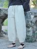 Johnature Damen Vintage Warm Plus Baumwolle Casual Hose Einfarbig Elastische Winter Hose Taschen Lose Damen Hose