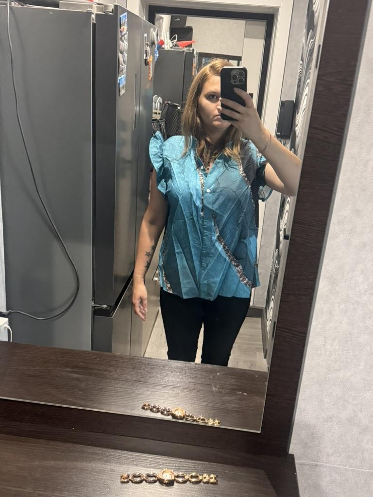 Wunderbare Bluse. Alles daran passt zu mir. Ich trage es mit einem Rock.