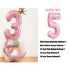 Grün-rosa Dinosaurier-Ballonturm mit 32-Zoll-Zahlenballon für Dinosaurier-DIY-Geburtstagsparty-Dekorationen für Mädchen